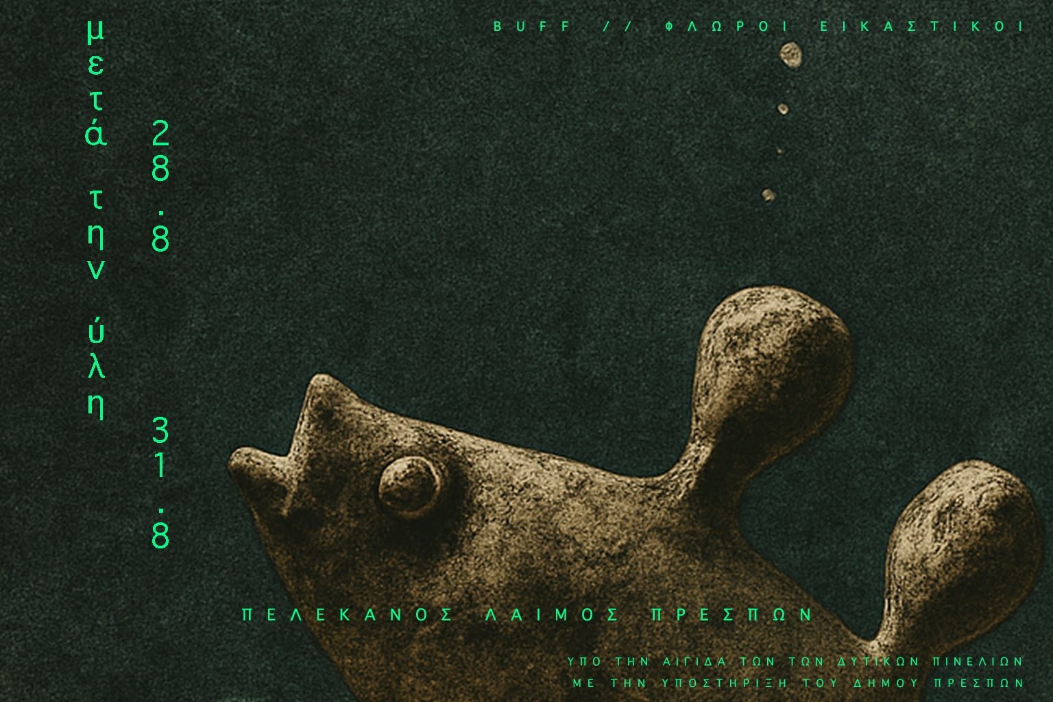 Ο Πολιτιστικός Σύλλογος «Δυτικές Πινελιές» και η ομάδα “BUFF”, σε συνεργασία με τον Δήμο Πρεσπών και το 3ο Εργαστήριο Ζωγραφικής του Τμήματος Εικαστικών και Εφαρμοσμένων Τεχνών της Σχολής Καλών Τεχνών Φλώρινας (\u03a0\u0394\u039c), ενώνουν καλλιτέχνες από Ελλάδα, Αλβανία και Βόρεια Μακεδονία, στις τρεις χώρες που συναντώνται στο Τριεθνές των Πρεσπών, σε μια κοινή καλλιτεχνική διερεύνηση του κύκλου της ύλης.